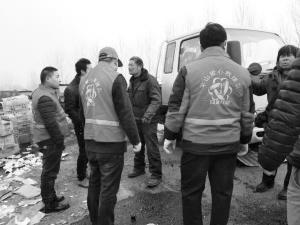 到了现场,大家才发现这里远远要比信息台发布的情况严重得多。现场一辆大货车侧翻,柴油、机油泄漏,满车的货物散落在附近50平方米的路面上,现场车主老夫妻倒没受伤。据了解,这是一对卖五金、厨具的老夫妇,河南人,住在省会。快过年了,他们为了在平山年集的时候多卖点钱,便半夜把车装满,想着早点在集市上找个好位置,卖了东西过几天就拿钱回老家过年。在路过平山县平山镇钢城路王母坡桥段时,不知不觉就开得快了点,走到王母桥时,见桥上有冰,本来想慢点,谁知对面来了车,车主冯天生一打方向结果发生侧滑,刹车根本刹不住,于是连车带货物全翻了。“我们老两口从车里爬出来,看着满地的货物,欲哭无泪。就在手足无措时,是一名叫许飞的救援队队员路过,他停好车安慰我们又和平山爱心救援队的队员们联系上。”冯天生老人说。