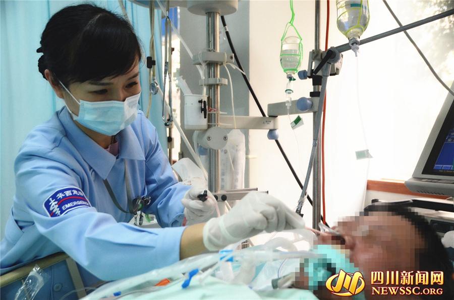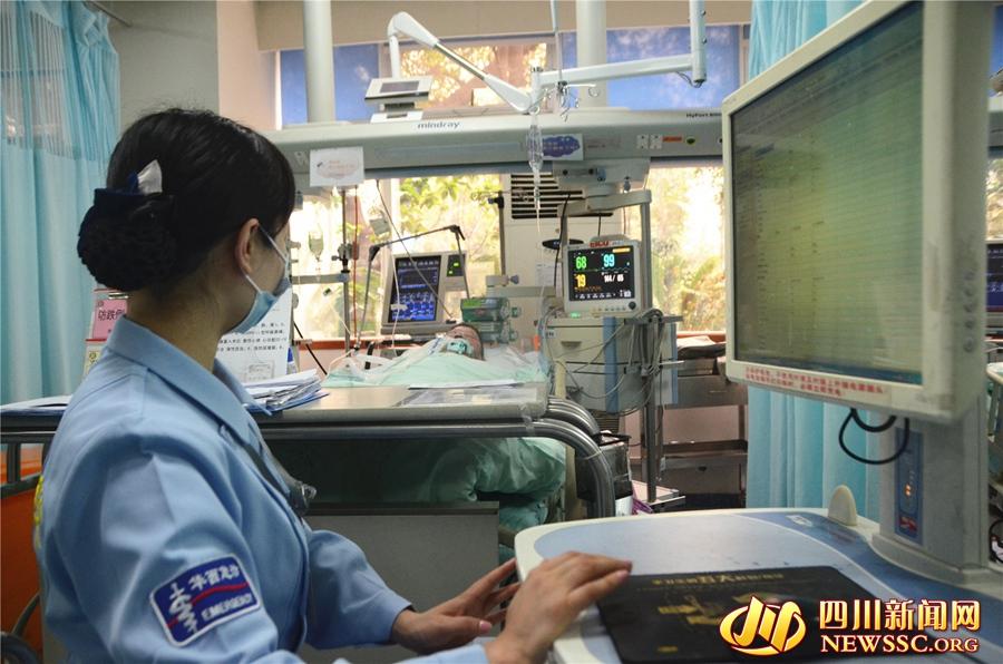 当天下午,四川新闻网记者在川大华西医院急诊重症监护室里看到,每一张病床的床尾都有一张长桌和一个没有靠背的凳子。在长桌上,放着病人的病情说明。梁燕告诉四川新闻网记者,这是急诊重症监护室跟急诊科其他区不一样的地方,护士需要24小时守在床旁,关注病人的病情变化。因为这些重症病人的病情变化都是一瞬间的事,因此护士对病人病情的监测很重要。