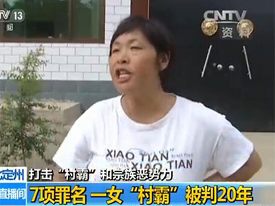 中央多部门多次表示,要加大整治力度,坚决铲除“村霸”和宗族恶势力“毒瘤”。去年在河北定州,就有一名女“村霸”获刑20年。