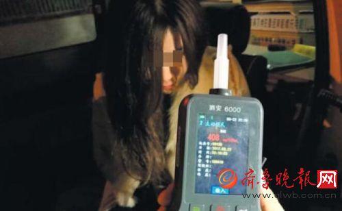 女司机酒精呼气测试值高达408mg/100ml。历城交警供图