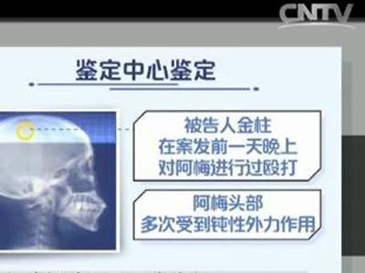 法院查明,4月6日晚上6点56分,被告人金柱拨打120急救电话,120急救人员赶到现场发现阿梅没有生命体征,经抢救无效而死亡。经鄂尔多斯市公安司法鉴定中心鉴定,阿梅因头部多次受到钝性外力作用致颅内出血而死亡。