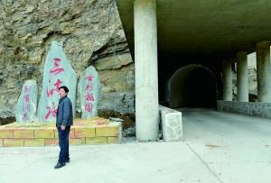 ▲如今现任村支书刘建华自豪地站在隧道口欢迎大家探访“世外桃源”。