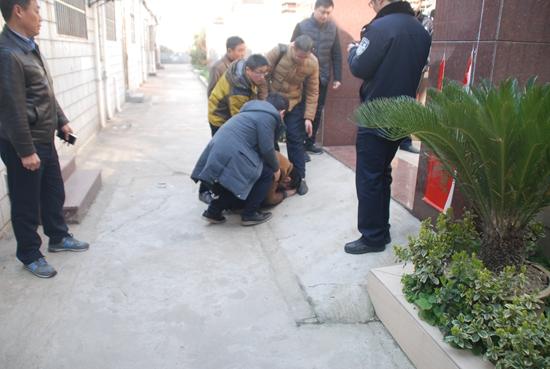 宋成在指认犯罪现场时,跪倒在受害人家门前。