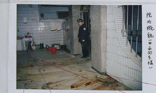 受害人浑身是血,已经看不清面孔,身下大片的血迹一直延伸到室外。院子里黏脚的液体,正是血液。