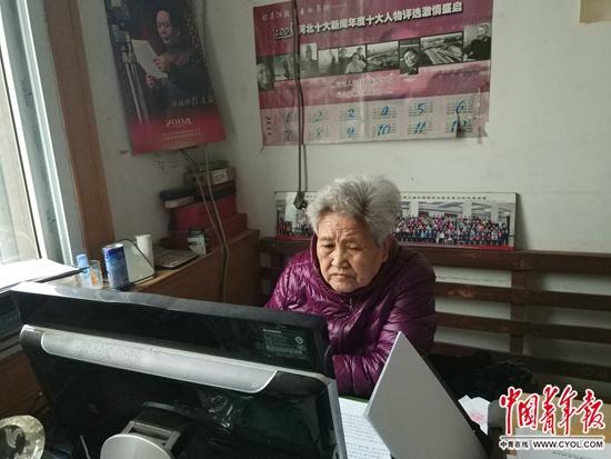 78岁的王淑荣在书桌前上网查资料。中国青年报·中青在线记者 卢义杰/摄