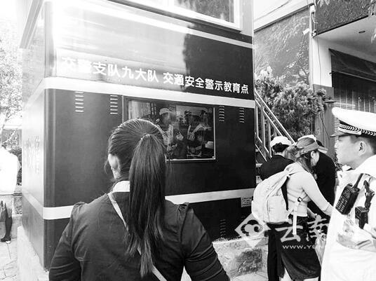在九大队交通安全警示教育点(路口岗亭)前,交警对其姓名进行了登记。然后,女孩站在岗亭前,看起了警示片。面对直播交警,她说:“我就是为了赶时间!”直播交警说:“如此一来,你不是浪费了更多时间吗?”