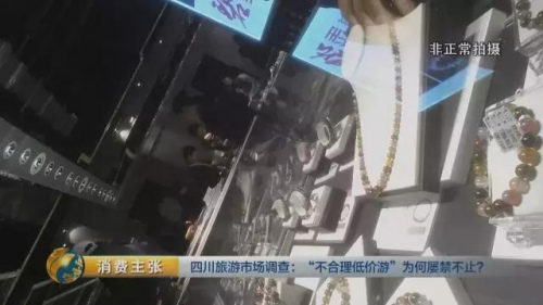 2016年11月,我们《消费主张》栏目曝光了四川旅行社和购物店私下勾结,通过低价游招揽游客,强制诱导购物,最后购物店给旅行社返还高额回扣的黑幕,节目播出后,国家旅游局迅速向四川派出调查组,四川全省也立即宣布整改,全面取消不合理低价游。