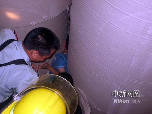 当特勤消防官兵赶到位于镇海蟹浦镇风云一族网吧对面的一家纸厂时,发现现场都是大卷的纸桶,一名10岁的小男孩头被卡在两卷大纸桶的中间。纸桶间隙很小,官兵们施救操作空间有限。