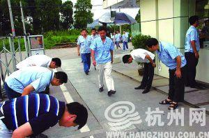 这是(浙江)一家生产卫浴产品的公司。办公室的蒋主任说,躬迎员工,已经实行了7个多月,只要不出差,董事长就会率领几位高层,早上6:50到公司门口,一直到7:30上班。