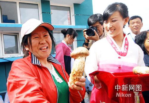 中新网延边9月9日电(秦俑)9月9日,延边朝鲜族自治州龙井市三合镇农民崔顺女采摘的松茸获得“龙井松茸节”松茸评比一等奖。