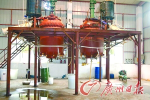 经勘验,在珠三角某市破获的冰毒工厂在4000平方米的厂房内安装了占地庞大的两套大型的化学反应釜,可同时生产0.5吨毒品。 (文、图/本报记者王鹤 通讯员肖定东、陈奕浩、钟穗双)