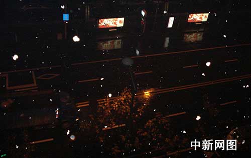 中新网杭州1月7日电(记者 龚读法 见习记者 鲍婷婷)杭州2009年第一场雪在夜色中悄然而至。1月6日晚23时许,大部分市民已经入睡,杭城天空开始飘起零星的雪花,渐渐地越下越密,簌簌坠落。半个小时后,洒落在树上、车上、地上积起薄薄的一层层雪粒,在街边昏黄的路灯映照下清晰可见。据了解,去年的第一场雪是在2008年1月13日,今年首场降雪比去年提早了7天。(完)