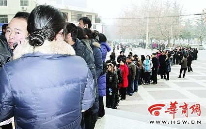 7日上午7时40分,记者看到,有近千人持户口簿排队站在位于前进路的渭南市行政服务中心办公大楼外,寒风中队伍蜿蜒300多米。一位姓刘的大爷说,他不到清晨5时就赶来排队,没想到还有比自己更早的。有人甚至全家人轮换排队。