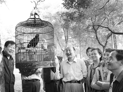 市民章爹爹养的一只鹩哥,会说笑,会背诗,会逗人,还会唱《学习雷锋好榜样》!
