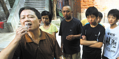 “我从六岁就开始吃灯泡了。”陈说,6岁的时候,他看到一个卖跌打损伤药的摊主,为了推销药,可以表演头破砖头、胸口碎大石,还吃灯泡,很好奇,就想去钻研练习。刚开始的时候,嘴巴被玻璃割烂了,但是年少的他坚持要练成这种“神功”,他每天都要拿着灯泡嚼,渐渐地,吃灯泡已经像嚼锅巴一样简单。到目前,他吃下的灯泡近400个。同时,他还练习了手劈鹅卵石,每天到珊瑚坝见到石头就劈。昨日,邻居们找来了一块直径10厘米的鹅卵石,只听“哈!”一声呐喊,刚刚还完好的一块鹅卵石,已经碎成了三块。围观的观众都被震惊了。