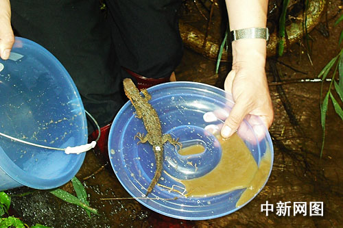 当工作人员将鳄蜥从桶中倒出之后,这些从未出过闺门的鳄蜥显得有些紧张,在经过短暂的试探之后,他们变得活跃起来。有些潜入溪中,有些穿入树丛之中,有些则长时间在岩石上逗留,寻找猎物。