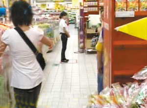 记者看到,在超市的货架旁,都有一个被框在框内的员工,他们笔直地立在框内,而顾客仿佛跟他们没什么关系,超市为什么要实行这样的规定呢?员工们讲,他们是生产厂家的促销员,受超市的管理,画上框给他们的促销也带来了很大的困难,为了弄清超市的真正目的,记者来到超市管理办公室,可工作人员不愿意接受采访。