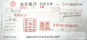 昨晚九点,记者在网站上看到了帖子。其中20万元的南京银行转账支票上有“南京市中级人民法院财务专用章”字样(如图)。