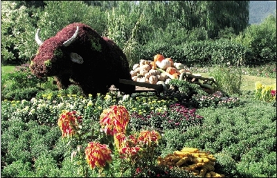市公园管理中心相关负责人介绍,国庆百万市花联展方案的主题是“国泰铸辉煌 民安享和谐” ,分艺术瑰宝谱华章、园林成果铸辉煌、和谐社会享安康三个篇章,每个篇章均由不同的公园来表现。其中,天坛公园的“龙腾盛世”、颐和园的“华彩颐和”、北海公园的“御苑鞠颂”均体现了国家艺术瑰宝的美丽超然,北京植物园的“盛世华章”则表现了园林发展的辉煌成果,紫竹院公园的“竹福祖国”等则是和谐安康的典范。