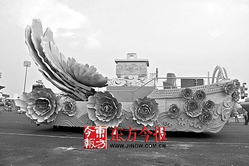 再过几天,国内外瞩目的新中国成立60周年大阅兵和群众游行,将在天安门广场举行,届时,游行队伍中的60辆彩车将一一经过天安门。其中,一辆载着国之宝鼎、周围遍布富贵牡丹的彩车,备受关注。这辆彩车,就是河南彩车——“花开盛世”。