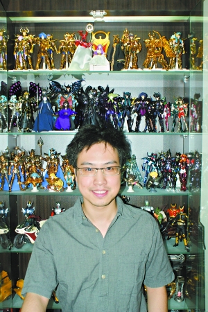 今年26岁的Ellajy是一家外资公司的部门高级主任,5年前一次偶然的机会,他开始收藏各类的ACTION FIGURE,如今他已是小有名气的潮流玩具收藏家。和很多80后一样,童年时买变形金刚、砌高达、玩扭蛋是他的人生乐事和梦想。“小时候不懂事,很多玩具买回来都不珍惜,玩了一段时间就扔了。直到2004年初的时候,变形金刚出了一只新版MP01擎天柱玩具。透过橱窗看见自己儿时最喜欢的柯柏文也‘长大了’,‘靓仔’了,忍不住就买下来了,谁知从此一发不可收拾。”Ellajy回忆道。