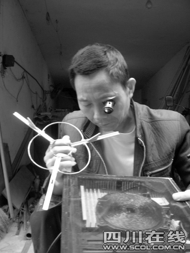 今年4月,何是锋戴上修理钟表用的放大镜,查看电磁炉内部元件,发现有3处被烤坏。何是锋将其焊接好后,这个电磁炉果然重新工作了。“要不让内部元件被烤坏,就不能让电磁炉面板发热;要不让电磁炉面板发热,就不能让锅具接触面板。”何是锋经过层层推理,多次试验,在6月发明出电磁炉多用锅架。