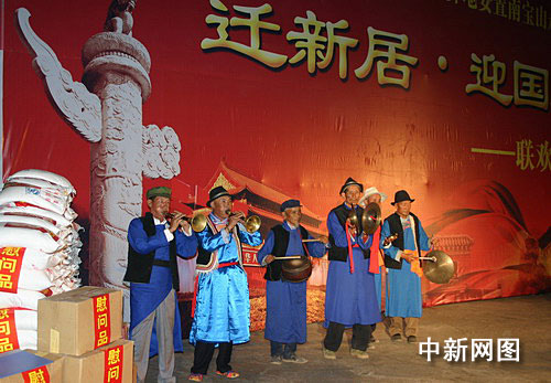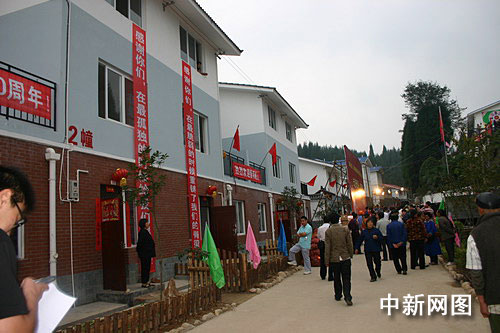 9月28日晚,当地举行了“迁新居•迎国庆”5.12大地震失地群众异地安置联欢晚会,南宝山的新主人们穿上盛装,点燃篝火,跳起欢快的锅庄,祝福祖国60岁生日。