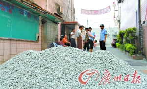 昨天早上7时,家住顺德区容桂恒顺阁小区的桂婆拄着拐杖去买菜,刚走到小区门口时就愣住了:狭窄的小道被一堆1米来高的碎石堵得严严实实。该小区50多户居民只好在碎石边铲出一条小道,但是小区内仍有多辆私家车受堵开不出去。
