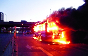 经过10多分钟抢险,火情逐渐得到控制。随后消防员又对油箱及周边部位反复喷水,进行冷却保护。火灾中无人员伤亡,但该路段交通拥堵30分钟。“多亏火势蔓延比较慢,给了乘客很多时间,否则后果真不堪设想了。”李先生说。