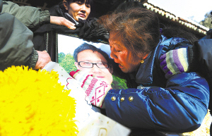 10:30,杨文超捧着弟弟的骨灰盒,缓缓前行。在悼念仪式上,杨济源的母亲泣不成声,不断亲吻儿子冰冷的遗像。简短的悼念仪式过后,杨济源的骨灰盒被放入盘山烈士陵园,最后关上门的一刹那,姐姐杨文超用手机拍下弟弟最后的长眠之地。
