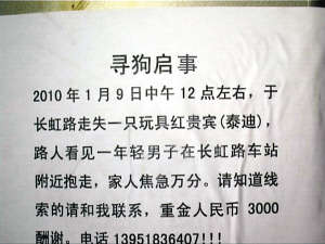 赵小姐从小喜欢养狗,每当小狗生病或者走失,她都得伤心地大哭一场。三个月前,她出门时丢了一只小狗,为此她伤心了好几天,天天茶不思饭不想,还哭个不停。家人心疼她,就花了11000元钱,买了一只玩具红贵宾(泰迪)犬。有了新的小狗,赵小姐心情才有所好转,天天带着泰迪玩,连睡觉都要搂着泰迪犬。前天中午,赵小姐骑电动车带着泰迪犬出门玩,经过长虹路和南湖东街路口时,泰迪犬突然从电瓶车上窜下,随后向南湖公园方向跑了,这时一名男子经过此处,快速追了出去,抱起小狗就消失在人群中了。赵小姐郁闷地回到家中,大哭起来,哭昏了几次。她的父母急了,托亲朋好友上街找狗。但大家找了11个小时,依然没有小狗的消息。