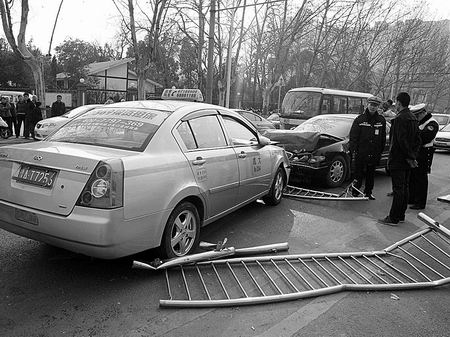 出租车司机王某说,当时,他驾车自东向西沿建设路走,突然看到前面有一名小男孩,赶紧踩刹车,但是由于车速太快,还是将男孩撞倒。接着,车又撞上护栏,和对面开过来的一辆别克轿车撞上。当记者问起当时驾车的速度,王某称,估计时速在60公里左右,而勘察现场的民警表示,从撞击力度上看,当时该车时速至少为70公里。