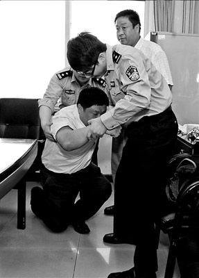 当时,西站公安分局站外派出所民警正在西站北广场附近巡逻,突然发现9路公交车在启动后,有两人在车上推搡起来,民警立即驾车跟随公交车,准备在公交车到站后,上车查看。