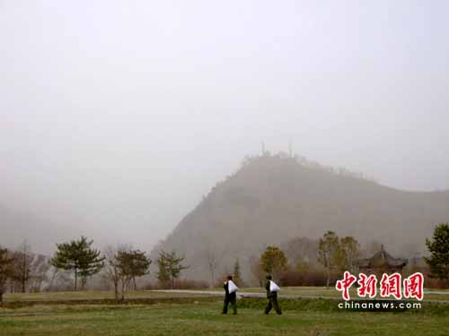 中新网 5月7日电 (高峰毅 焦瑾琦)7日一大早,山西五台山台怀镇遭遇沙尘暴天气,能见度在1000米左右。