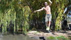 男子发现鸭子被冻湖面 跳湖破冰救援