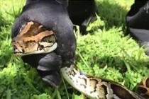 近3米巨蟒横穿高速险遭碾 获警方救助