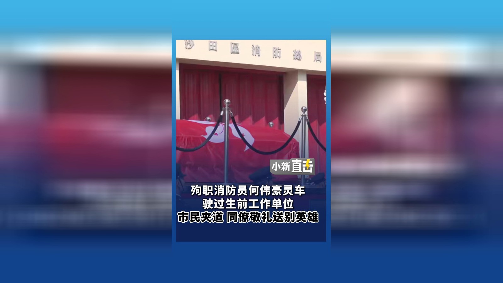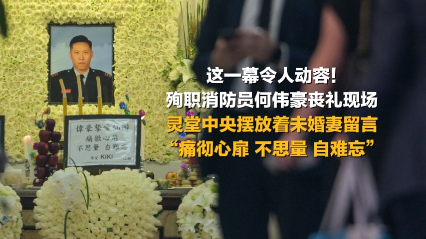 殉职消防员何伟豪灵车驶过生前工作单位 市民夹道同僚敬礼送别英雄