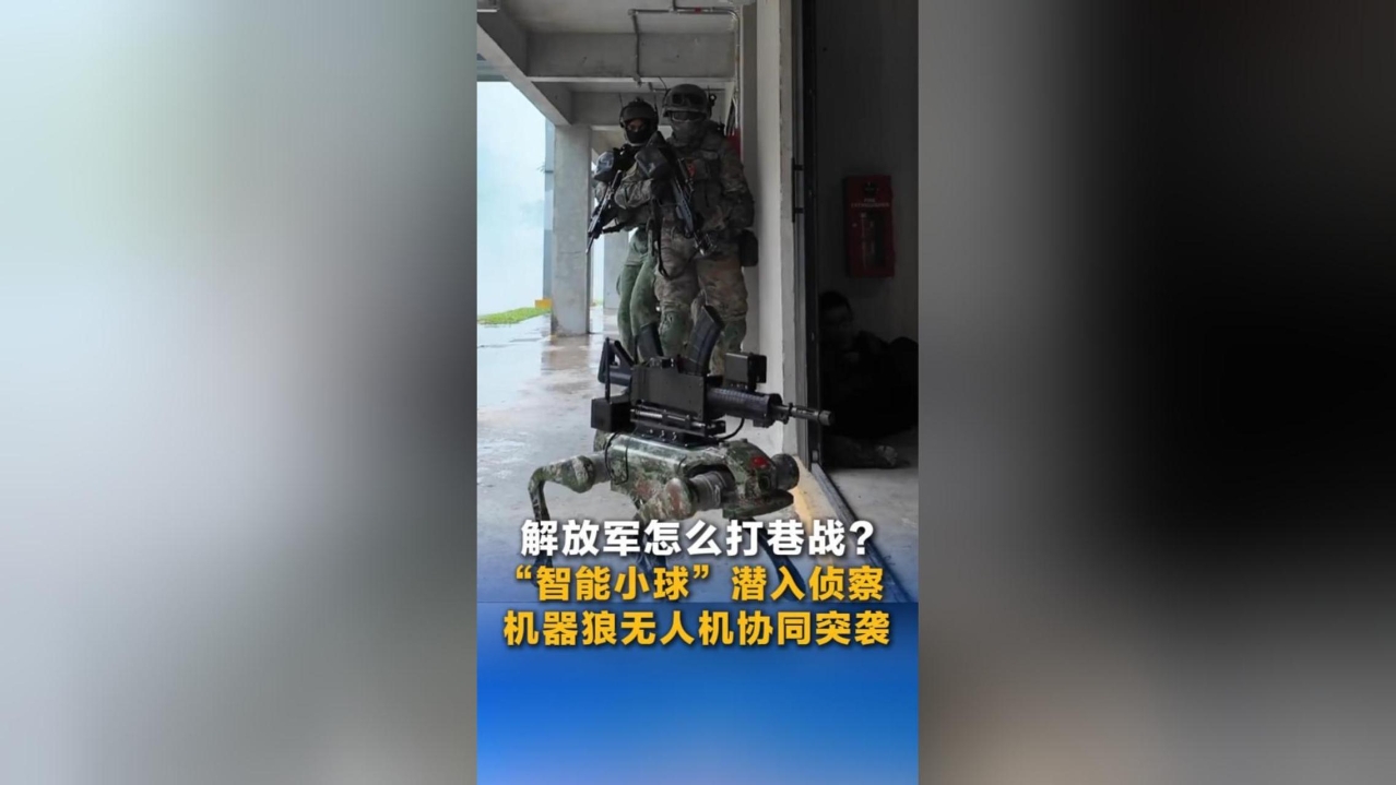 解放军怎么打巷战?“智能小球”潜入侦察 机器狼无人机协同突袭