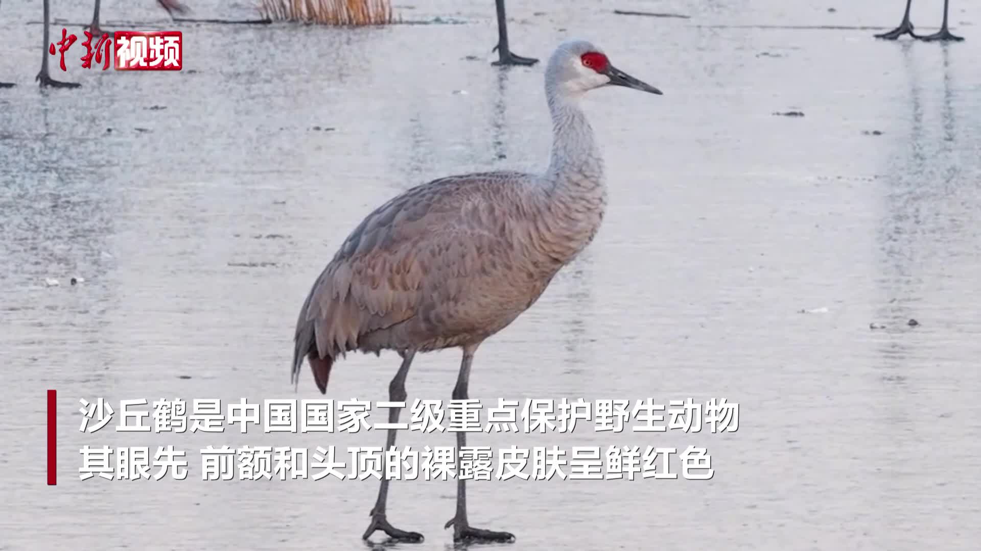 河北衡水湖首现中国罕见冬候鸟沙丘鹤