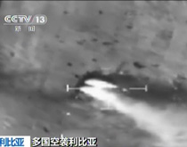 英国国防部今天公布了一段军事打击利比亚的画面,它记录了狂风战机对利比亚政府军事目标进行空袭的过程;昨天美国也公布了发射“战斧”式巡航导弹空袭利比亚的画面。