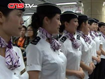 同期声:制作者 姚显明:最前面的比较靠前的这是藏族的哈达,这是一种礼节,我的想法是,她不仅站在前面,向全世界打开这样一个窗口,让全世界人来认识中国,了解中国,都到中国来,这样也是一种礼节,同时也是代表我们中华人民共和国全国人民的热情。