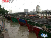 我现在是在海口市琼山区的一处民居中 我们可以看到 从门外不断灌进来的雨水 已经淹没了这里