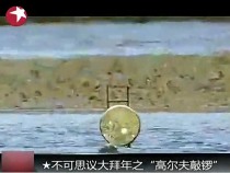 高尔夫选手玩花活 击球200码水面"敲锣"