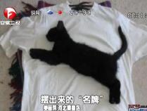 • 黑猫爬上白衬衫 摆出趣味“名牌”