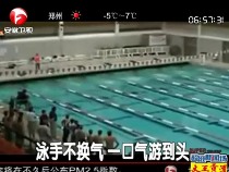 牛人泳手肺活量超大 一口气游到泳池对岸