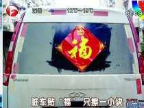 • 懒惰车主后玻璃只擦一小块留“福”地