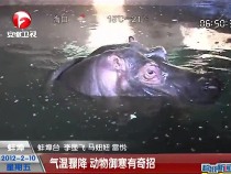 河马泡温泉蟒蛇躺电热毯 动物御寒有奇招