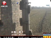 村民就地取材把砖头绑在电线杆上自制"梯子"
