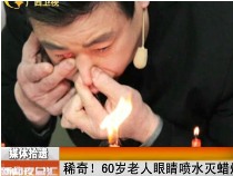 60岁老人眼睛喷水灭蜡烛