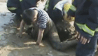 男子发现鸭子被冻湖面 跳湖破冰救援